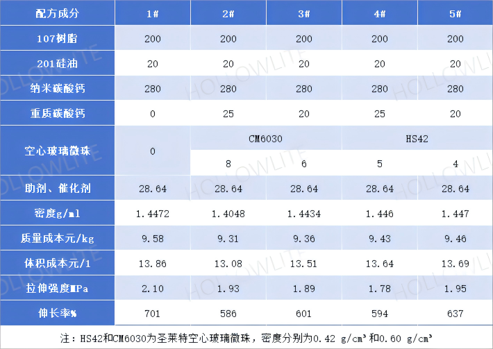 以密度1.45g/ml的密封胶为例,使用微珠HS42/CM6030进行实验,方案如下: